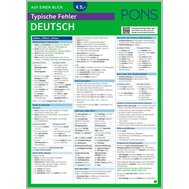 * Alle typischen Fehler und die wichtigsten Ausnahmen, Unregelmäßigkeiten und Zweifelsfälle auf einen Blick zum schnellen Nachschlagen und Lernen